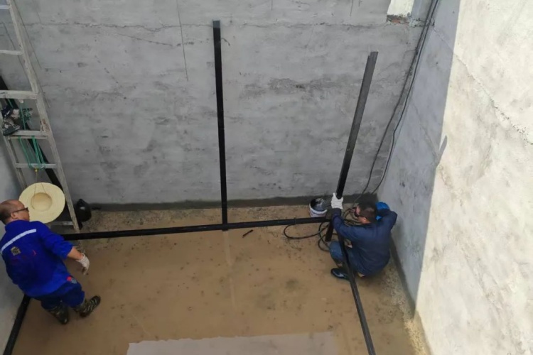 屠宰場污水處理池池深四米五,池內(nèi)像個巨型“蒸籠”——陽光直直曬進池底,熱氣在池壁間循環(huán),比地面更顯悶熱。而焊工師傅們的工作,正要在這樣的環(huán)境內(nèi)開展——他們需要進池,將一根根鋼架精準(zhǔn)焊接,為后續(xù)設(shè)備安裝創(chuàng)造條件。