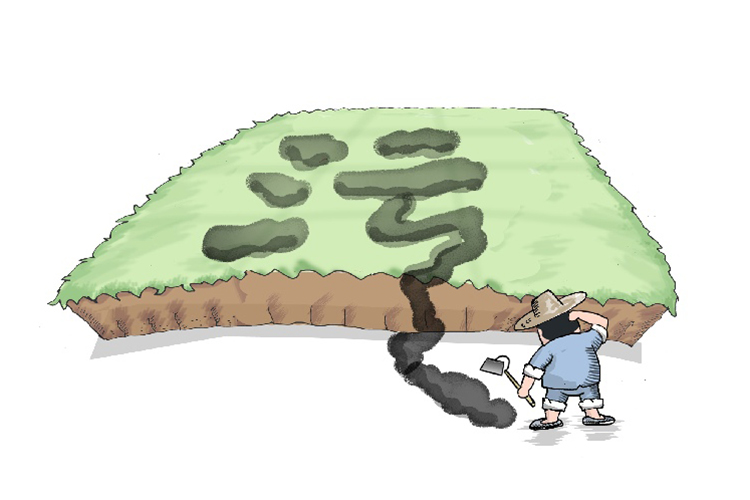 →發(fā)現(xiàn)周圍土壤板結(jié)、散發(fā)異味、顏色變化;懷疑土壤被污染。